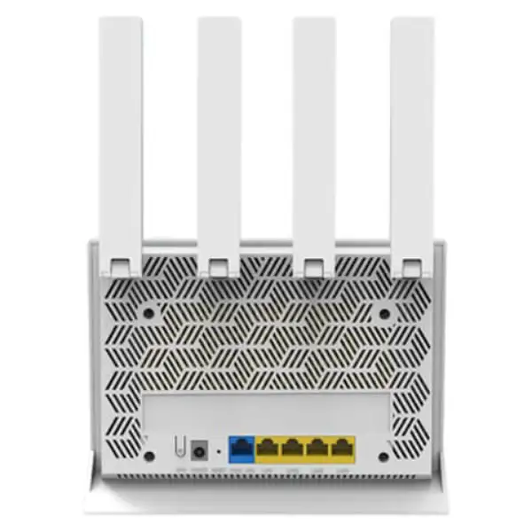 در بخش پشتی دستگاه، مجموعهای کامل از پورتها شامل یک پورت WAN گیگابیتی، چند پورت LAN پرسرعت و حتی درگاه USB برای اشتراکگذاری فایلها و پرینترها دیده میشود. این امکانات به کاربران اجازه میدهد تا هم دستگاههای سیمی را متصل کنند و هم از قابلیتهای اشتراکگذاری تحت شبکه بهره ببرند.