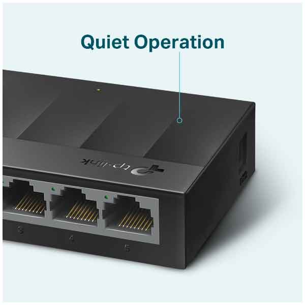 LS1005G بدون فن طراحی شده و مصرف برق آن تنها ۳.۷ وات است. این ویژگی باعث میشود گرمای کمی تولید شود و استفاده طولانیمدت در شبکه کوچک بدون مشکل باشد.